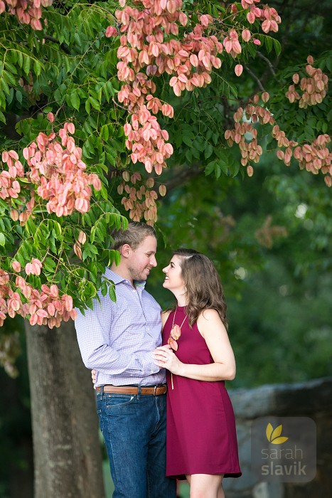 During each Piedmont Park photoshoot, I find something new in the park that looks great in photos. With Kristen and Greg, I found a tree with peach pink, lantern-like flowers, which I included in this selection. I had a wonderful time photographing this charming couple, and I look forward to working with Kristen and Greg again at the Georgian Terrace for their wedding this upcoming spring 🙂